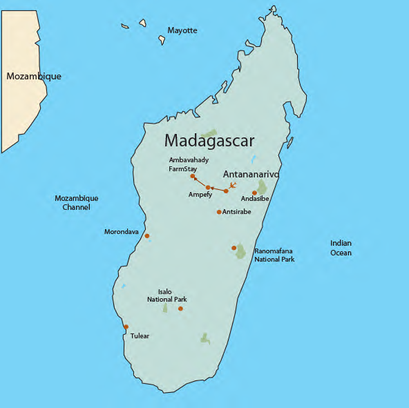 After another morning watching Malagasy life go by, we will take a gradual journey back to Tana. Depart Tana anytime after 4pm for home, with memories of heartfelt Malagasy hospitality.